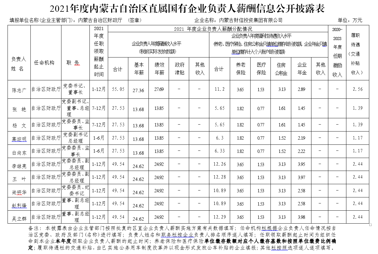 2021年度內(nèi)蒙古自治區(qū)直屬國有企業(yè)負(fù)責(zé)人薪酬信息公開披露表